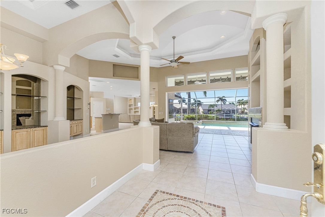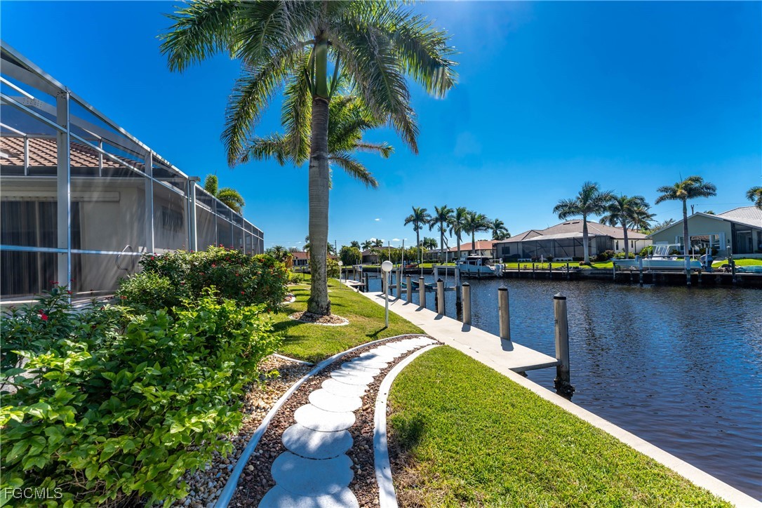 Live the life you have dreamed of in this spacious waterfront home in the golf and boating community of Burnt Store Isles. The minute you walk in the door, you will notice the stunning views. Enjoy a day of golf, cool off in your pool and then jump on your boat at your private dock, with 18,000 lb lift, and head out to see an amazing sunset. This home will not disappoint and is priced to sell quickly. There is plenty of space for family and friends and a perfect flow for entertaining both inside and out. The convenient location is close to schools, shopping, dining, entertainment, PG airport and all that Punta Gorda has to offer. The City of Punta Gorda maintains the seawall, the roof was replaced in 2023, the HVAC system in 2016 and the whole house has been plumbed with a Manabloc system. This home will exceed your expectations, and is priced to accomodate potential updating. Don't miss this one, call for your private showing. Transferrable flood policy available.
