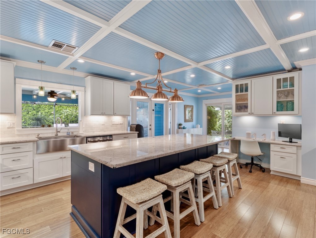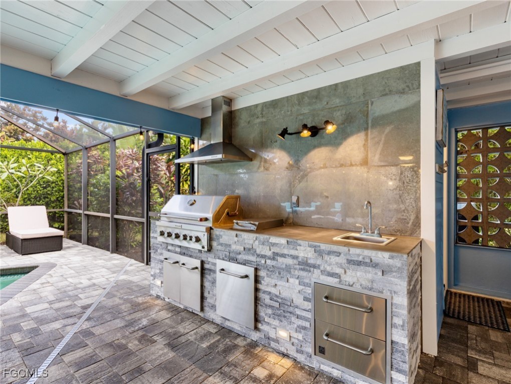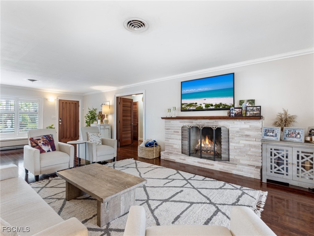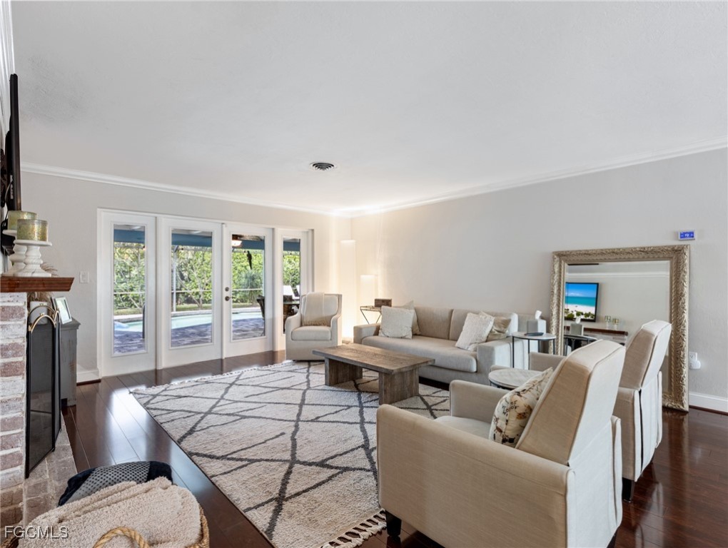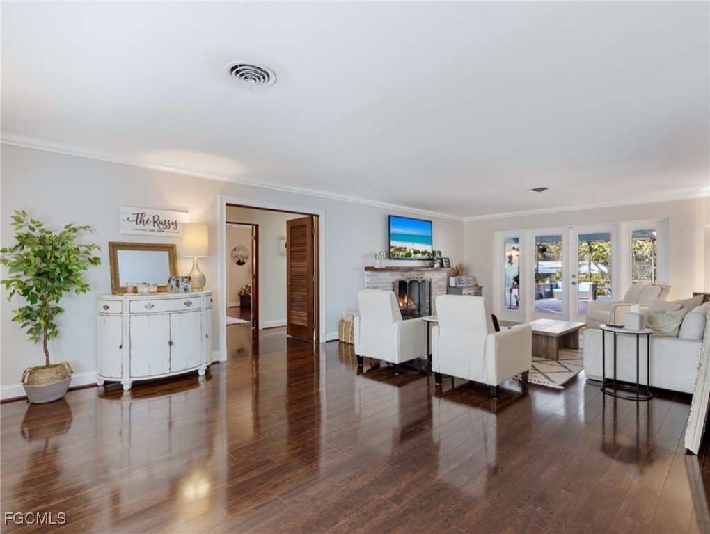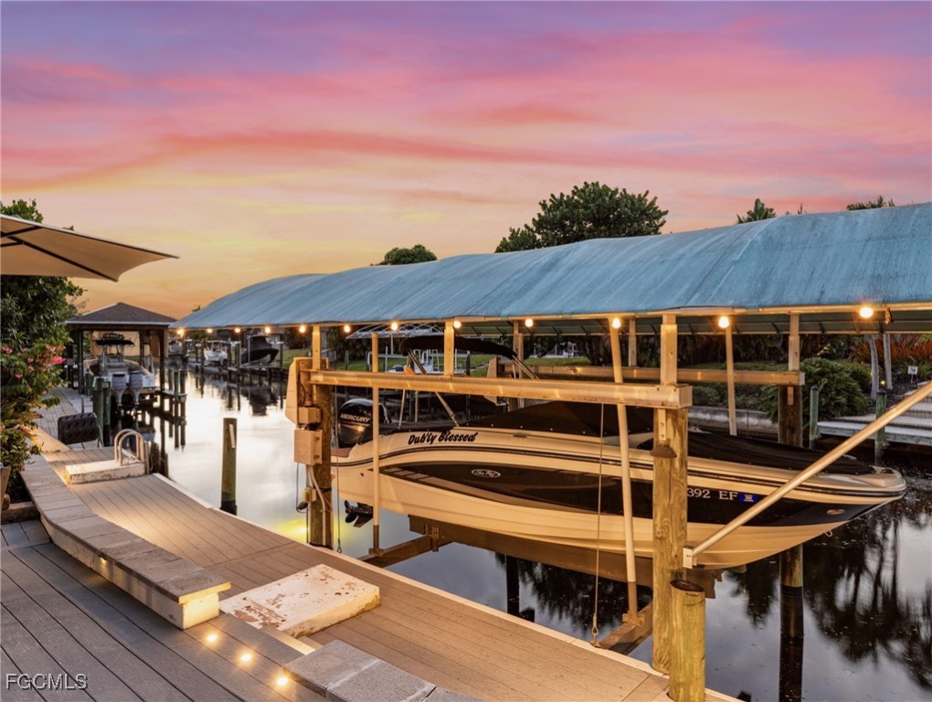 Direct Gulf access and a proven history of zero storm surge or water intrusion! This beautiful residence is reminiscent of Old Florida, however, it has been updated with modern conveniences and sits at a nice elevation at the quiet end of a deep-water canal. Located in the coveted riverside McGregor Corridor, a semi-circle paved driveway and spacious front patio welcome you into the home. Main features include a Living Room, Family Room, 3 en suite bedrooms plus an additional flex room/office/optional 4th bedroom, along with 4 full baths—all thoughtfully designed across nearly 4,800 square feet of indoor/outdoor living space on just under half an acre. Full hurricane-impact windows and doors add both security and efficiency. Just a three-minute cruise to the Caloosahatchee River and on to the Gulf of Mexico puts boating, fishing, and sunset views right at your fingertips. A brand-new pool heater (installed spring 2025) allows year-round swimming in your private backyard oasis. Inside, the chef’s Kitchen shines with high-end appliances, a double refrigerator/freezer, a gas range, wine cooler, granite counters, and abundant cabinetry. There's also extra space for a Breakfast Nook with French Doors leading to a private, quaint patio. The inviting Living Room centers around a rare, working wood-burning fireplace, while the spacious Dining Room easily accommodates large, or intimate, gatherings of family and friends. Perfect for today’s lifestyles, both the generous Family Room and a separate-entry flex room offer ideal spaces for working from home, hobbies, or private guest quarters. The Primary Suite is a true retreat, featuring a large walk-in closet and a spa-inspired bath with dual vanities, a soaking tub, and a walk-in shower. French doors lead outside to a resort-style outdoor Lanai complete with a fully equipped kitchen (propane grill + burner), a large pool, and approximately 600 square feet of covered patio for comfortable all-season enjoyment. Mature, lush landscaping—including multiple fruiting and flowering varieties and palms—provides a sense of privacy and tropical charm while custom landscape lighting creates additional ambience. The Trex boat dock is outfitted with a covered 7,000 lb lift, electric and water, and a large waterside seating area. An oversized detached three-car garage provides extensive room for vehicles, storage, and workshop space. Recent upgrades offer added value and peace of mind: two new AC units (2023), updated electrical wiring (2023), Tesla/EV charger (2023), roof (2018), baby-safe pool gate (2021), superscreen pool cage (2022), and many more improvements. Blending luxury, functionality, and an unbeatable location, this exceptional property is truly one of a kind. Don’t miss your chance to experience it—schedule your private showing today!