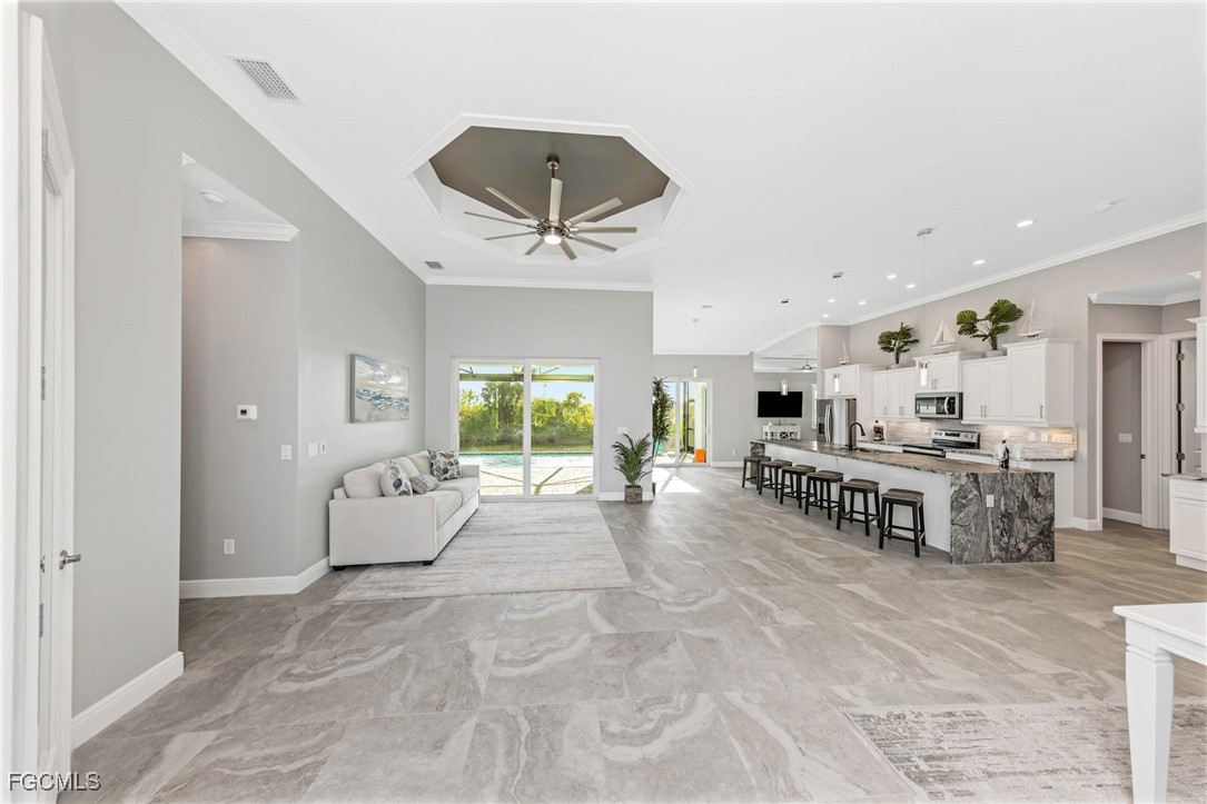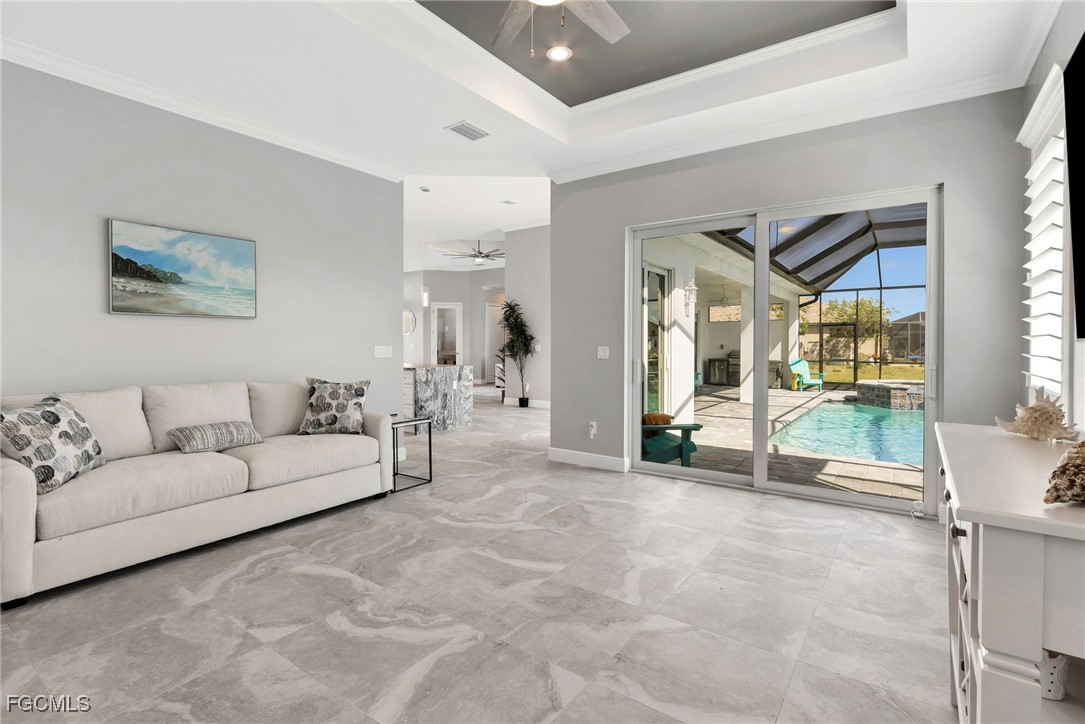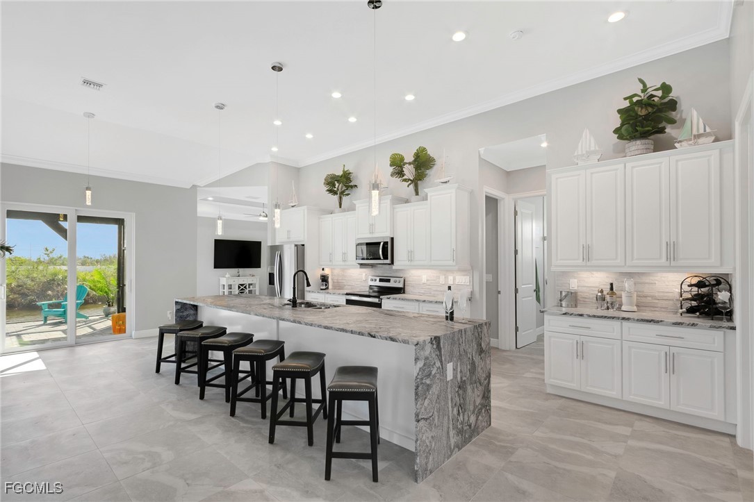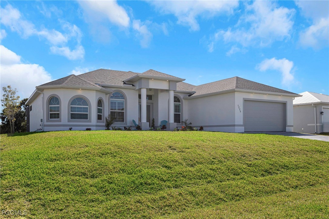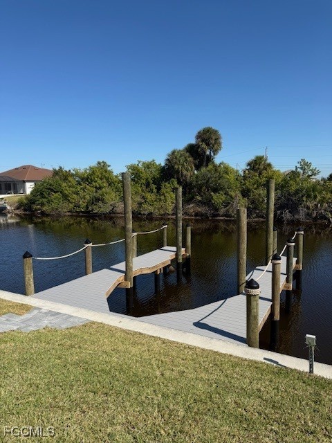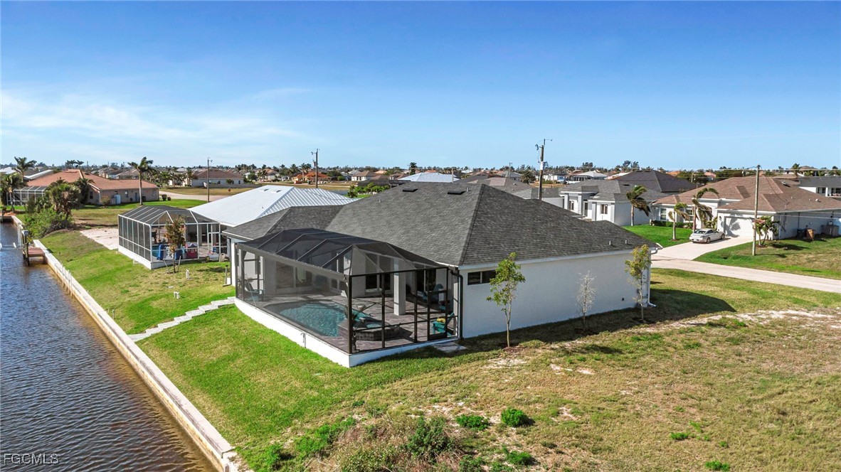 NEW CONSTRUCTION / GULF ACCESS!! INCLUDES 10,000LB BOAT LIFT, DOCK, & CANOPY! Escape to your private oasis in desirable NW Cape Coral! This stunning, custom-built 4-bedroom, 3-bath home features a spacious open floor plan, a dedicated family room, and a luxurious pool with a saltwater system Jacuzzi, and abundant natural light throughout. The gorgeous kitchen showcases a level-four granite waterfall continent island while the expansive lanai with picture window screening offers breathtaking 100-foot canal views, perfect for serene mornings and unforgettable evenings. Designed for both comfort and peace of mind, this home sits at a high 9-foot elevation and is equipped with Low-E hurricane-impact windows and doors for added protection and energy efficiency. Boaters will appreciate the short commute to the Gulf. Upgraded luxury features. FULLY FURNISHED with brand-new, high-end furniture, this home is move-in ready. Whether you're looking to relax or entertain, this is your opportunity to own one of the grandest homes in a neighborhood filled with beautiful residences. Don't just imagine. Come live the dream! Features included Plantation Wood Shutters-all Windows, Rolling Shades-all Sliders for privacy, Ten-foot structural beam construction for huge ceilings and 8-foot doors, Front privacy glass “rain shower” Hurricane Impact Entry Doors, Five high and large (8’) Low-E Hurricane Impact sliding glass doors, 12’ Entry, 14’ one-of-a-kind octagon trey ceiling with Rope Lighting, 11’ Two-Tone Painted Trays throughout the home including guest rooms, Separate Office/4th Bedroom, Separate Formal Dining, Separate Family Room, Impressively large kitchen, all stainless-steel appliances, with waterfall continent, Lighted Wood Cabinets with crown molding staggered, upgraded backsplash, Upscale Level Four leather granite throughout, 5 ¼” Crown Molding Throughout, entire house has large 24”x24” marble-style porcelain tile flooring, Master bath includes huge rainforest three-headed shower & freestanding Roman tub, pool and Jacuzzi have a salt water system with a heater, Whole House Reverse Osmosis System, Wood bedroom closet shelving, Hunter Fans Installed in all rooms, Upgraded Plumbing Moen Faucets, and Soffit Lighting front/Rear, Paver driveway with Culvert, Paver Front Walkway, Rear Paver walkway, electric & plumbing to Dock, Floratam Sod with Sprinkler System, Paver walkway, Plumbing, & Electricity to the seawall, Outdoor Kitchen 62,000 BTU with Stainless Steel 4 burners and Griddle, Underground Electricity to the home, Four exterior electric outlets and Plumbing Hose Bibbs, and Extra Large long Garage Extended 3 feet for Truck or Trailer w/ Epoxy Finish Flooring and Eight Foot Door! Boat Lift & Canopy will be completed within two weeks.