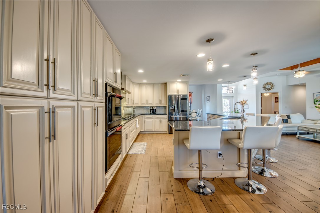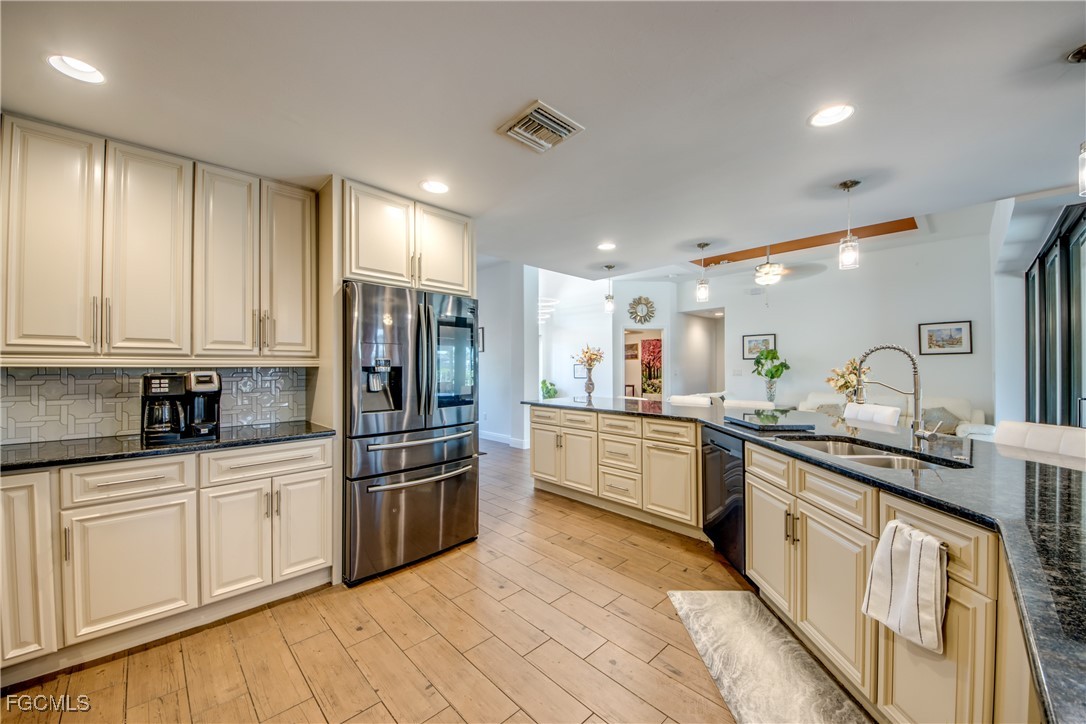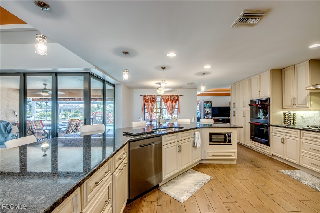 Welcome to your dream Gulf access pool home—an oasis of comfort and elegance. This property is situated in a highly desirable area, just minutes away from a variety of restaurants, shopping, and entertainment options. Impressive both inside and out, this four-bedroom, three-bath residence showcases sleek, modern design elements, spacious living areas, and high-end finishes throughout. Step outside to discover a beautiful backyard featuring saltwater and heated pool with sun-ledge and ample lounge areas, compliment by a large Awning for an extended covered lanai, perfect for entertaining or relaxing. Pavers enhance the driveway, pool area, and walkways, adding to the property's charm. This home features a split-bedroom floor plan that ensures privacy, with the master suite serving as a spa-like retreat complete with jacuzzi jetted soaking tub, pass-through shower, and dual vanities. The state-of-the-art kitchen is designed for culinary enthusiasts, equipped with top-of-the-line appliances, custom wood cabinetry, double oven, GAS stove fueled by a 400-gallon propane tank, granite countertops, under-cabinet lighting, and a convenient breakfast bar. The elegant finish of the open main living area seamlessly connects the living room, family room, and kitchen, creating an ideal layout for hosting gatherings. Additionally, you can keep your boat right in your backyard equipped with a Dock, 10k boat lift, ready for trips to the Gulf. The home is equipped with hurricane-impact windows and doors and boasts an open living room with 90-degree sliders that offer stunning views of the intersecting canals and basin. Experience the best of Florida living in this exceptional canal-front home, where luxury meets adventure and serenity. Your dream home awaits.