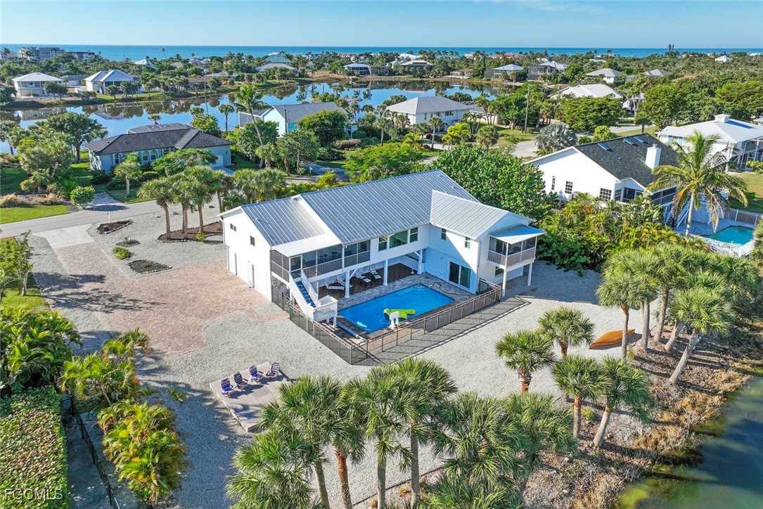This Little Lake Murex lakefront elevated home offers over 3,000 sq ft with wonderful water views. Home features to include 4 bedrooms (2 ensuites) and 4 baths, with bonus area and ample air-conditioned storage. An enclosed private elevator services the main living level. This piling pool home includes paver pool deck and driveway with 3 separate screened lanais, a beautifully designed kitchen with SS appliances, roll-out shelving cabinetry, and hurricane impact glass & doors throughout. The split floor plan and additional living areas are ready for you to make them your own with ample room for large family and friends. A well sought after and desirable West Gulf near-beach neighborhood is located within a short stroll to beach access. LLM is a community of 49 residences with park-like amenities lot encompased by Conservation Lands including tennis, pickle ball courts and hoops.