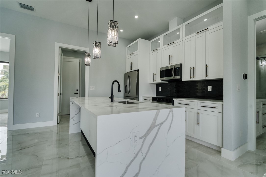 Stunning new construction waterfront home offering direct sailboat access with no bridges—an ideal location for boating enthusiasts seeking quick and easy navigation to open water. The property features modern architecture, elegant curb appeal, and high-end finishes throughout. A highly desirable mother-in-law apartment provides exceptional flexibility for multigenerational living, guests, or private extended stays. The spacious, open-concept layout is filled with natural light, enhanced by large windows that frame the peaceful canal views. Enjoy resort-style outdoor living with an expansive screened-in lanai, luxurious pool with integrated spa, and a wide paver deck perfect for entertaining or relaxing. A concrete seawall is already in place, adding long-term stability and convenience for docking. Additional highlights include a stylish paver driveway, under-truss outdoor living area, and clean contemporary exterior lines that further elevate the home’s modern design. This property offers the perfect blend of luxury, comfort, and true Florida waterfront living
