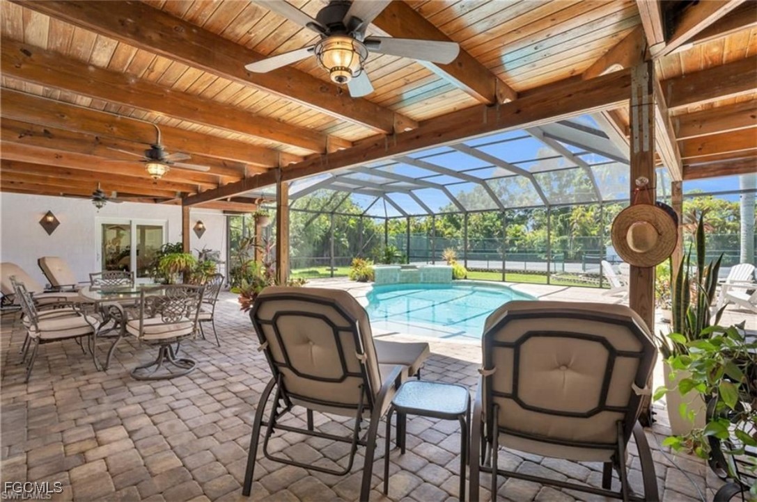 Location, Location, Location. Welcome to 3644 Putter Point Lane a 1.5-acre home in the heart of Fort Myers close to everything Fort Myers has to offer. Truly a spectacular open concept home with over $100,000.00 in recent improvements. Upon walking into the foyer, you are welcomed with an abundance of light coming from the skylight and surrounding sliding doors and windows. The home has four bedrooms, plus a den, three full baths, a three-car garage, and it all comes with no HOA fees to worry about! There is plenty of space to park your boat, RV, or any other toys! The gourmet kitchen is a chef's dream with plenty of walking and storage space around the beautiful, large granite top island. The master bathroom is the epitome of luxury, featuring a large tub, a large shower, and a 3-person sauna, perfect for unwinding after a long day. The outdoor area is a paradise, complete with a beautiful remodeled pool featuring pebble resurfacing, new tile and coping, spa, and a Pentair pool system which can be controlled via app on your phone. The outdoor Lanai is truly impressive, with plenty of space for friends and family. There is even plumbing hooked up for an outdoor kitchen if desired. Additional features include your own private Tennis/Pickle Ball Court and a Basketball Hoop. The property also includes a back gate which can walk to Lakes Park in only minute. Owners have meticulously upgraded and maintained this to be a forever home, and it is ready to move into TODAY.