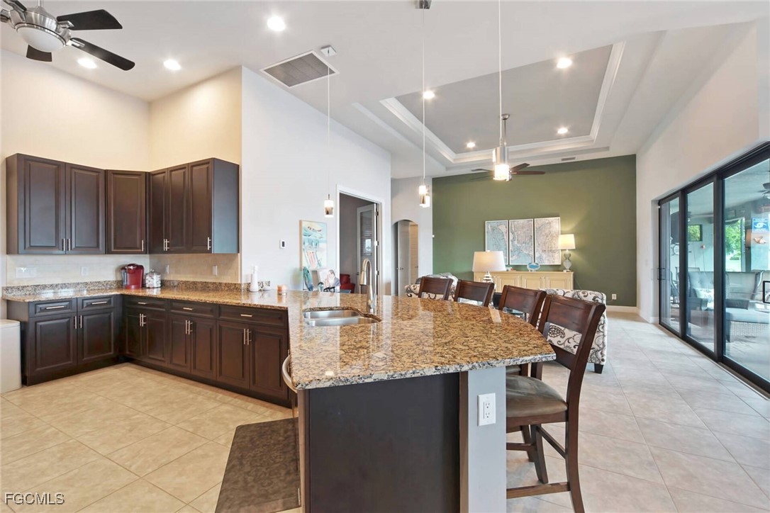 Elegant Design: Tray ceilings in the primary bedroom, living room, and family room enhance the home's appeal.
