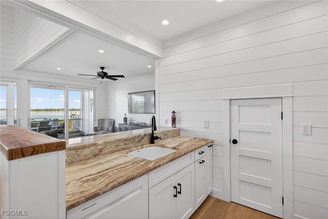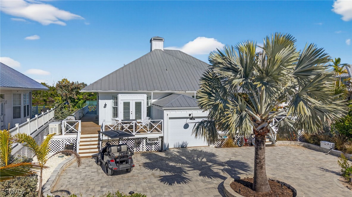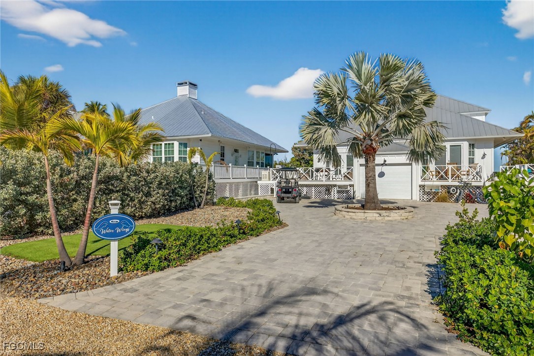 Water Wings cottage is waterfront, two-stories with Master on the first floor. The open first floor plan allows water views from the kitchen and living/dining areas which open onto a covered/screened porch and an open deck. The second floor features a loft-guest bedroom with bath, and a water view balcony. Both the interior and exterior have been renovated to first class quality. Exterior is Hardi Board, roofing is aluminum and decks are wood. Naturally the construction meets all windstorm resistance codes as the developer is a well-known contractor that has completed numerous high quality homes and renovations on the island over the past 20 years. Interior finishes include granite or marble counters, quality cabinetry and appliances. The entrance to the home is from a driveway of stone pavers and a thoughtfully landscaped yard. There is a shared storage room, a new propane generator and a 500-gallon propane tank. In addition to these fine features, Village owners recently were treated to significant road improvement of layered gravel, and heavily landscaped with mature palms of all types, creating a beautiful, tropical boulevard access. Recently completed multi-family dockage is just steps away and accommodates boats up to 24’.