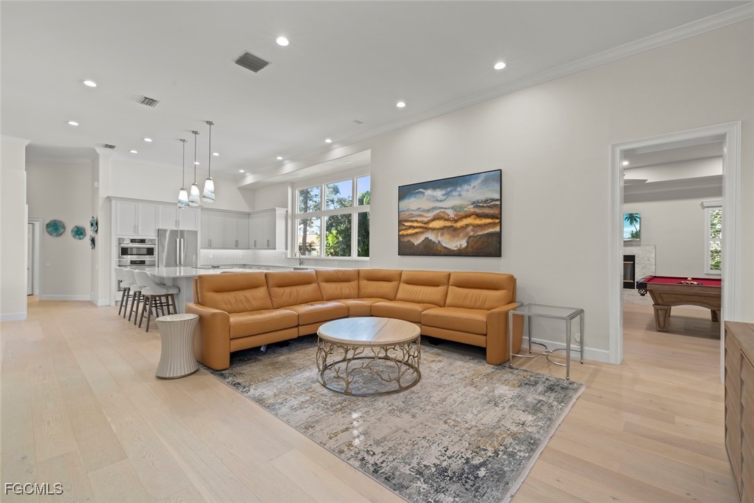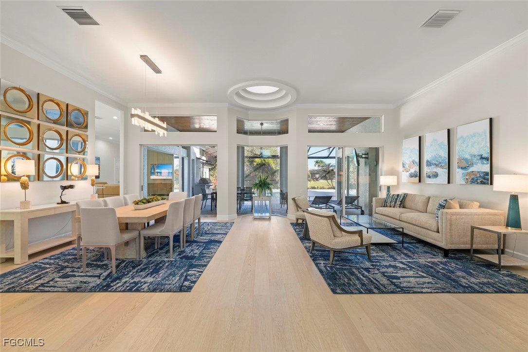 This refined four-bedroom residence presents an elevated standard of luxury living. Thoughtfully redesigned with premium finishes and modern infrastructure throughout. Soaring ceilings enhance the sense of space and light, while three elegantly appointed baths support both comfort and sophistication. The primary suite serves as a private retreat, featuring generous proportions and a dedicated office—ideal for quiet work or relaxation. At the heart of the home, the redesigned, state-of-the-art kitchen is a showpiece, equipped with stainless steel appliances and sleek contemporary finishes, perfectly suited for both everyday living and upscale entertaining. A versatile den or bonus room follows, complete with a fireplace and wet bar, offering an inviting setting for hosting or unwinding. Extensive upgrades include a new metal roof, new windows, updated electrical systems, new flooring, and a whole-house generator that powers the entire home with confidence and ease. Outdoor living is equally luxurious, highlighted by a heated pool, new pool deck and screened cage, outdoor grill, and curated outdoor lighting, all set against tranquil lake views. A four-car garage and endless potential for personalization complete this exceptional property, where modern luxury meets refined lifestyle living. MANDATORY EQUITY MEMBERSHIP FEE OF $115,000 DUE AT CLOSING. ADDITIONAL MONTHLY FEES APPLY.