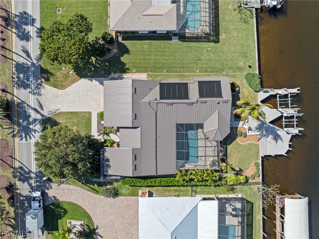 This Direct Sailboat access home is absolutely stunning. You will find updates and upgrades all throughout this home. When arriving to this home, you'll find a wide paver driveway and a NEW Metal Standing Seem upgraded roof. All windows and doors are Impact Resistant on this home. Inside you'll find 24 x 24 imported travertine floors in most of the home along with wood floors in the bedrooms. The Gourmet Chef's kitchen features granite countertops, a huge island, Viking appliances, under cabinet lighting, and much more. The master suite is amazing with a huge bedroom, a large bathroom, and two walk in closets. The 3 guest bedrooms are all large with lots of closet space. The lanai has an amazing outdoor kitchen, fireplace, beverage refrigerators, a large covered sitting area and a huge pool deck. The pool and spa were resurfaced in 2021 with a pebble Tec finish and along with electric and solar heat being added. The dock is enormous with a ton of space to hang out on in addition to a 10,000 lb. boat lift and a 7,500 lb. boat lift. In the Garage the floor is epoxied, and the door is an upgraded insulated hurricane rated door to go with the mini split in the garage for extra space or projects. There is also a large storage room in the garage. The home also features a continues 320-amp system that is more efficient than a traditional 400-amp system. The main power service to the home is underground so no overhead lines running to the home. There is also a 500-gallon propane tank buried on the property that is connected to the stove (electric available), the grill, and the fireplace. A 13kw generator will be left that can also connect to the gas system. This home has never flooded and is ready for you to move right in.