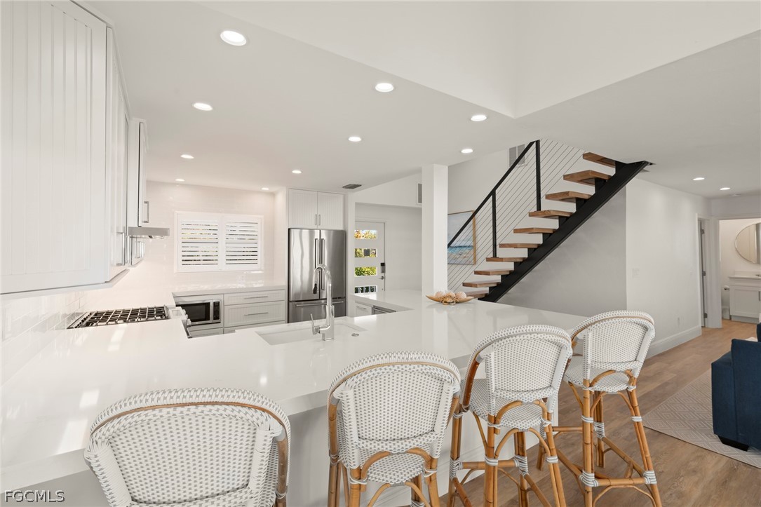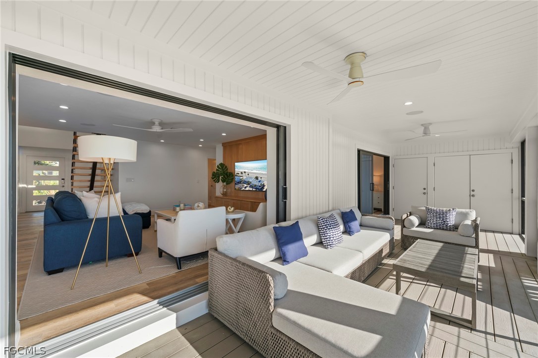 Offering a premier direct Gulf-front location, Beach Home 19 is an elevated 3 Bedroom + Den, 3 Bath residence positioned along one of Captiva’s most sought-after stretches of beach within the gates of South Seas. Thoughtfully redesigned and extensively renovated, this exceptional home blends modern coastal sophistication with the natural beauty of its beachfront setting. The open-concept interior features luxury vinyl flooring throughout, creating a seamless foundation for both durability and style. A custom floating staircase anchors the living space as a striking architectural focal point, enhancing light, volume, and visual flow. The beautifully appointed kitchen pairs form and function with custom wood cabinetry, substantial quartz countertops, premium stainless steel appliances, and a gas cooktop, true Gulf-front cooking with a view. Coastal-inspired furnishings and curated finishes create a relaxed yet refined atmosphere, allowing the Gulf to remain the focal point from nearly every room. Expansive impact-resistant windows invite abundant natural light while providing energy efficiency and peace of mind. Outdoor living is equally compelling, with composite decking designed for effortless enjoyment of sea breezes, sunsets, and direct access to the sugar-sand beach just steps away. Located within the gated South Seas community, Beach Home 19 offers privacy, exclusivity, and immediate access to some of the finest beaches in the United States. Whether envisioned as a private retreat or a luxury investment opportunity, this residence captures the essence of Gulf-front living on Captiva Island.