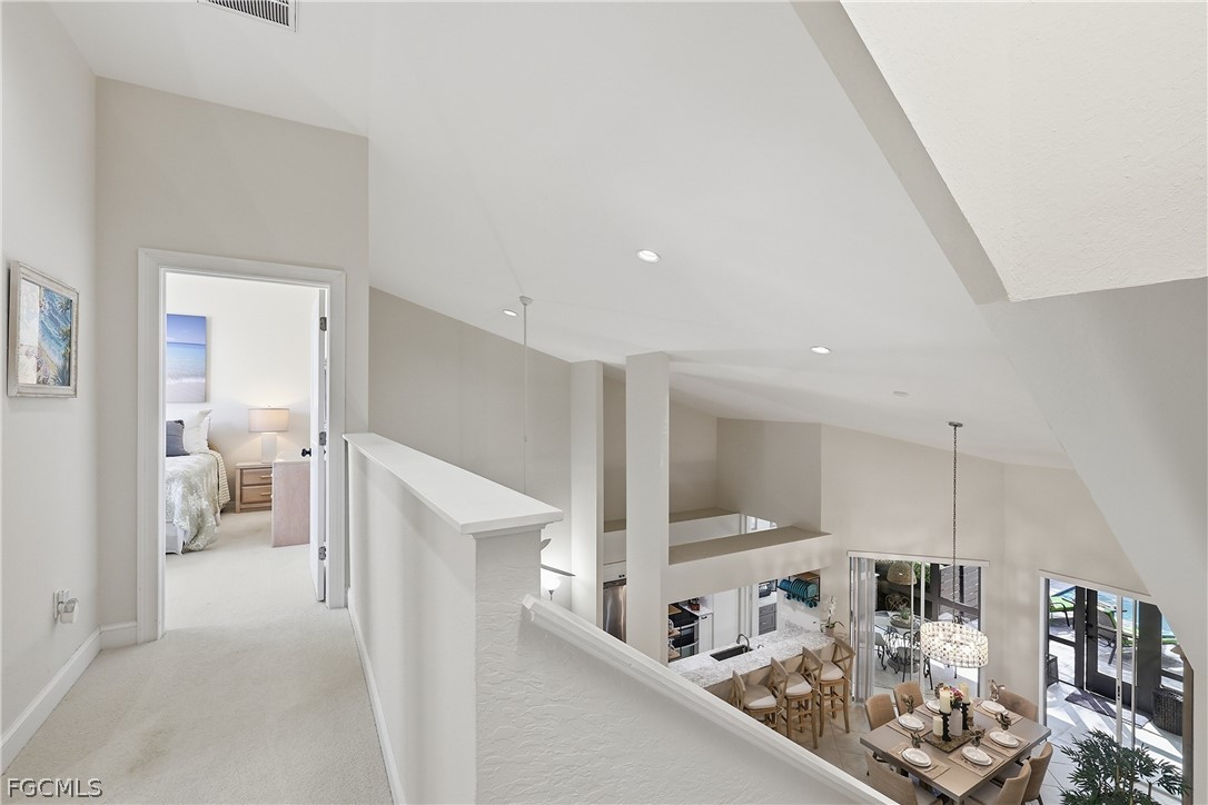 The updated first-floor owner’s suite offers a comfortable and private retreat, with a corridor of closets as you walk to the tastefully updated primary bathroom and oversized walk-in shower. The spacious upstairs bedrooms give guests their own place to unwind, and also has an updated bathroom that has both a tub and shower. Step outside to the air conditioned, glass-enclosed sunroom where you can dine in comfort, or lounge with a beverage or a book. Just beyond that, step outside into the impressive, newly built screen enclosed state-of-the-art private swimming pool which has become a highlight of this exclusive property, with elegant spouting water features that create a peaceful poolside setting. A place where you can grill, dine in comfort, or unwind with a beverage beside the gas-lit tables, which create a warm and romantic ambiance for evening entertaining.