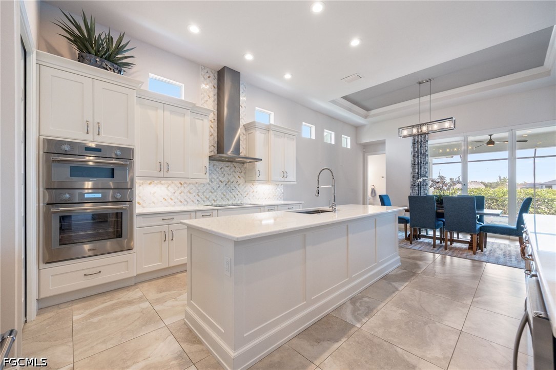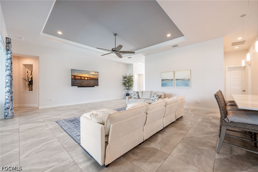 From the moment you arrive, the Architectural Stone Detail, Tile Roof, Grand Columns, and Expansive Paver Driveway set the tone. A Double Door Entry opens to a Wide Foyer and leads into the Great Room, where Soaring Tray Ceilings, Custom Lighting, and Fully Pocketing Sliders create a seamless indoor-outdoor flow.