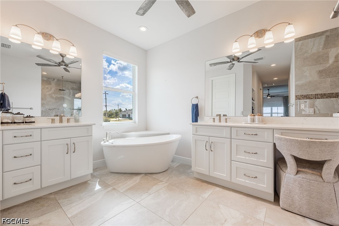 The Split Floor Plan offers privacy, with a Primary Suite showcasing Tray Ceilings, Electric Blinds Throughout the Home, Dual Walk-In Closets, and a Spa-Inspired Bathroom with Dual Vanities, Dedicated Makeup Area, Soaking Tub, and an expansive Walk-In Shower with Designer Tile, Multiple Showerheads, and a Built-In Seating Area.