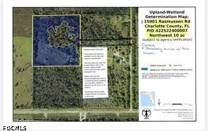 Creating your dream home on this beautiful 10+ acres is a breeze! LCEC POWER IS IN PLACE!!!? The Wetland Determination report is complete, and we have 2 acres of UPLANDS in the ideal spot for building, plus plenty of room to add a pool/spa and a barn. It’s very private, but you’ll have easy access to the property via your own private driveway. This Custom Michaela Design features a 3-car garage and a stunning, prestigious entryway. Inside, you’ll find 3 bedrooms, 3 full baths, and a half bath, a full-size dining room, a large kitchen with a huge island, a great room, a study/den, a walk-in pantry room, and a large laundry room (not just a walk-through from the garage). The primary bedroom has a large room with sliding doors to the lanai, 2 walk-in closets, a private water closet, a free-standing tub, 2 separate vanities, and a huge walk-through shower with multiple shower heads. Bedroom #3 is a second master with a private bath that leads out to the lanai, perfect for a pool bath. The great room boasts 11’4” tall ceilings, and to top it off, there’s an outdoor kitchen to complete this luxury home!!! You can make all your own custom selections, from the roof to the doorknobs! Building a custom home on this 10 acres is a wonderful way to get exactly what you want! Other plans are available, or feel free to bring your own. There’s a generous allowance included for the required site work!! The close proximity to Babcock Ranch, Publix, shopping, and dining makes this a perfect location! ***Seller Financing available for lot portion***