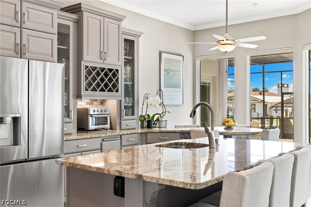 Boating enthusiasts will appreciate direct Gulf access with no bridges, allowing for effortless, quick trips out to open water. The private dock is equipped with a boat lift and canopy, making it ideal for protecting your vessel and maximizing time on the water.