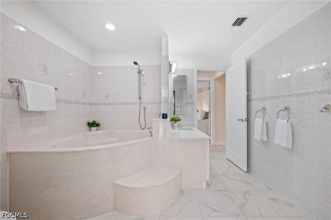 Inside, the layout is flexible and spacious, with two separate living areas, a bright open kitchen, indoor and outdoor dining flow, and a den that works well as an office, bonus room, or extra gathering space. One of the standout features is the TWO PRIMARY SUITES, one downstairs and one upstairs, making the home especially appealing for multigenerational living, guests, or buyers who want extra privacy. The upstairs primary suite occupies the second floor and includes its own waterfront sitting area and private balcony, while the downstairs primary suite offers convenient access to the pool area. The guest bedrooms are generously sized, and the guest bath doubles as a pool bath with a large soaking tub.