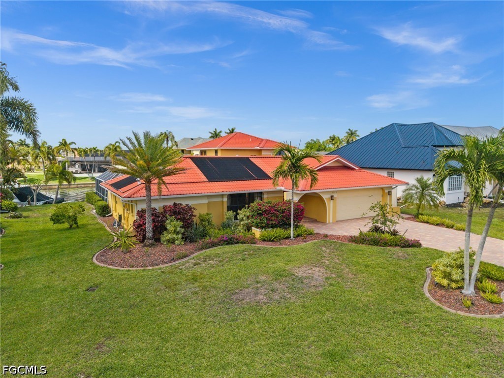 The kitchen and interior finishes were updated with the kind of improvements buyers will notice, including custom soft-close cabinetry, quartz countertops, updated appliances, and tile flooring that fits the Florida boating and pool lifestyle well. Major system and feature updates include a metal roof, 2 complete A/C systems, updated electrical panel, water heater, impact-resistant windows in key areas, custom shutters, new interior and exterior paint, remodeled baths, LVP flooring upstairs and on the stairs, epoxy garage floor, and more. The pool is solar heated and has an above-average size and depth, with an approximately 6-foot deep end. The property is also wired for fiber internet. If boating, poolside living, and a prime Southwest Cape Coral location are on your list, you need to see this home!