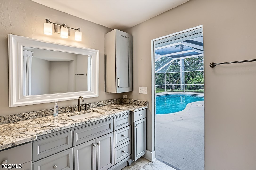 The kitchen is a standout, featuring new appliances, granite countertops, and abundant storage—ideal for any home chef. The spacious primary suite includes a well-appointed bath with a walk-in shower and direct access to the pool area.