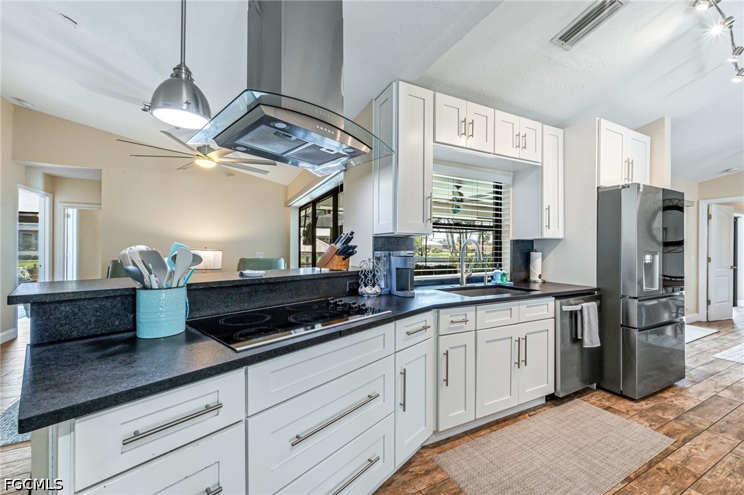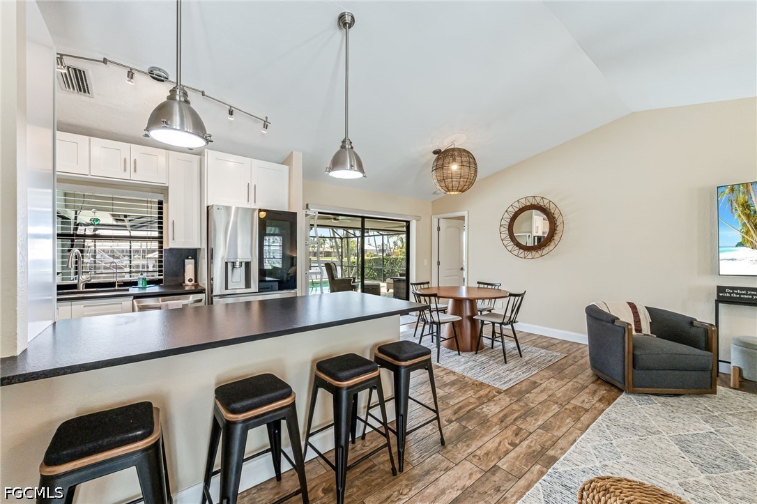 Located in the highly desirable Yacht Club area. This stunning, well maintained and professionally furnished Sail Boat Access Canal Pool home with less then a 5 min. boat ride to the river making this home a Boaters Paradise. This home is being sold fully Turn Key and features: Lush Landscaping, Fence, circular driveway, Metal Roof, enjoyable Canal and Landscape views from the covered porch, Screened Electric Heated Salt Water System Pool, Boat Dock with Captains Walk & Electric, 17,000 lb Boat Lift, with Canopy. Brand New A/C System installed in 2025, and New Pool Equipment. All New Screen in Pool Enclosure. Inside the home you'll first notice the spacious floor plan, with Tile Flooring, Plantation Shutters, Updated Stainless Steel Appliances in the kitchen. Solid Surface Counter Tops in kitchen and baths. The Master Bathroom also has Dual Sinks and a Walk-In Closet. Make this home yours and start enjoying the Florida Lifestyle.