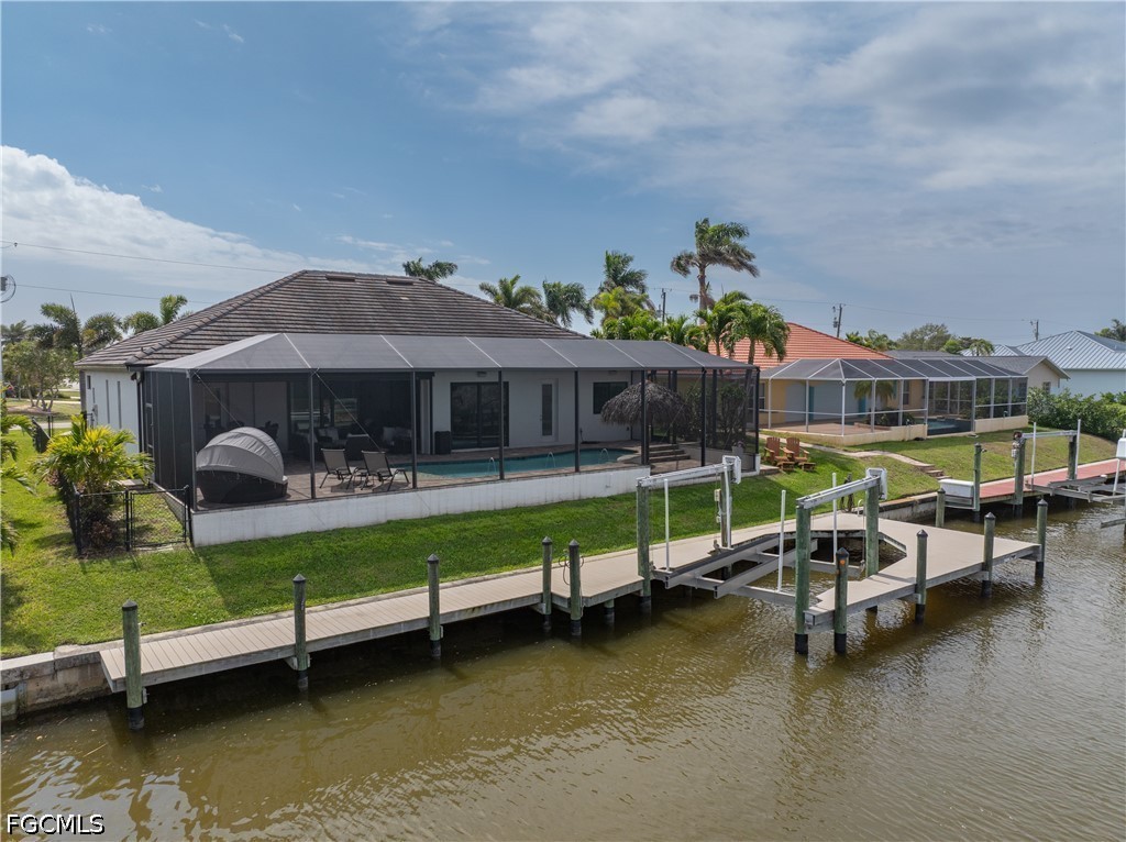 Enjoy peace of mind with impact windows, doors, and a roll-down impact screen for the covered lanai, keeping outdoor furnishings secure. The private dock includes a 10,000 lb boat lift for easy water access.