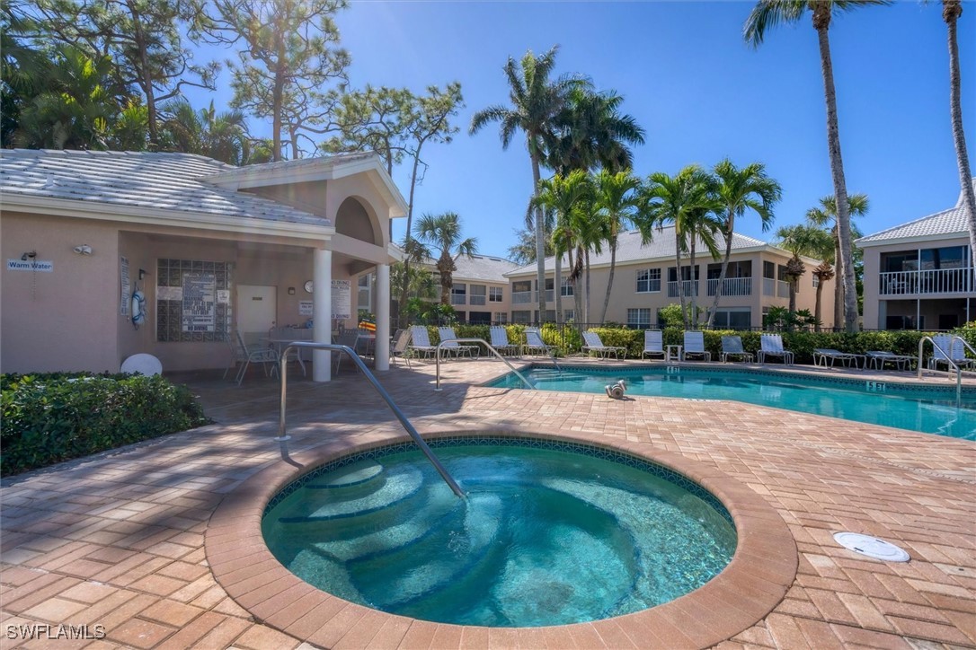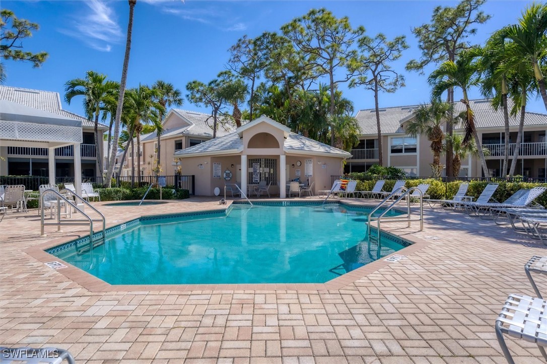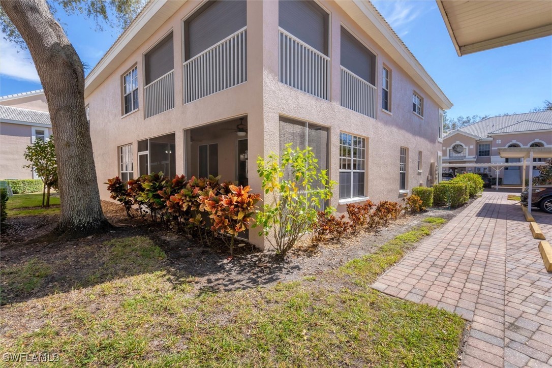 Welcome to Bermuda Cay at Vanderbilt Lakes! ONLY 1.5 miles to the beach! Ideal for seasonal or annual SWFL living ... beautiful gated community situated in a highly-desired Bonita Springs area that offers a community pool and is close to Wiggins Pass, just a short drive to Lover's Key, right around the corner from boating clubs, shopping, & dining- PLUS IT IS LESS THAN 2 MILES FROM THE BEAUTIFUL BEACHES THAT LINE THE GULF OF MEXICO. This first floor end unit has vinyl flooring throughout, guest bath and laundry room, blinds, kitchen granite counters, all stainless kitchen appliances, ceiling fans on lanai, dining room chandelier, rock and pavers in courtyard, large storage room off the laundry room indoor and temperature controlled. Offers a very comfortable layout w/ great room design, beautiful updated kitchen w/ breakfast nook & bar, split bedroom floor plan, french doors on one guest room making it perfect for a den/home office, long screened lanai, open front lanai, and covered parking just steps away from the home.