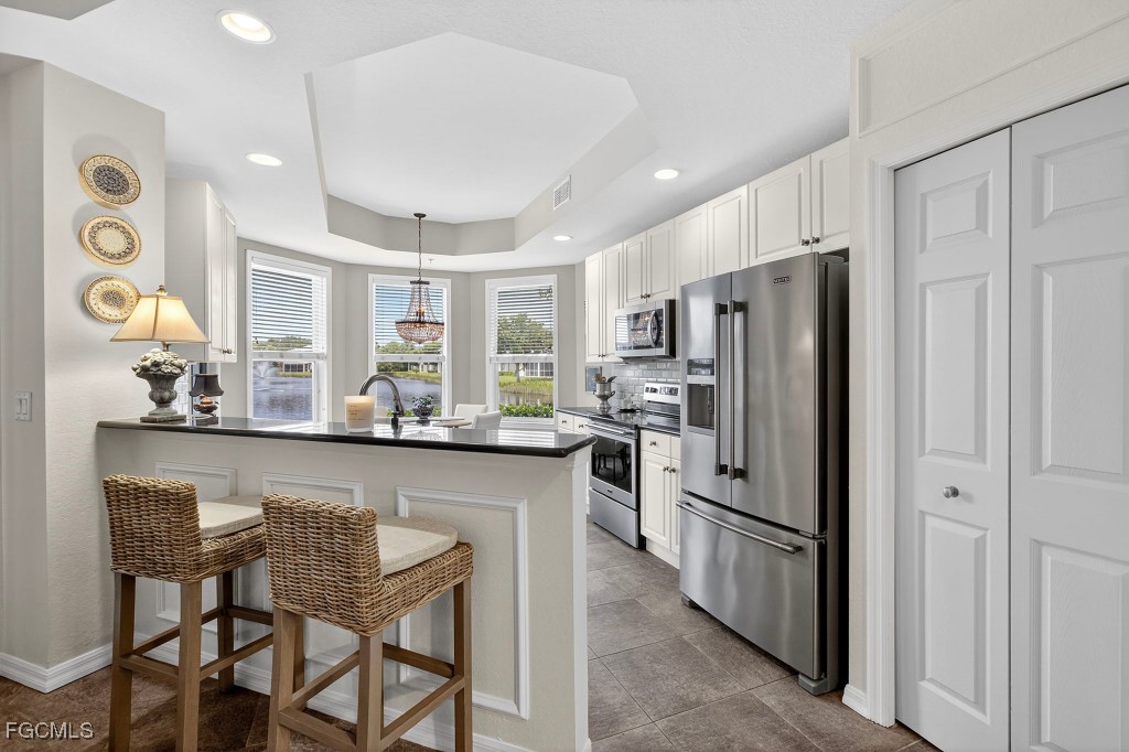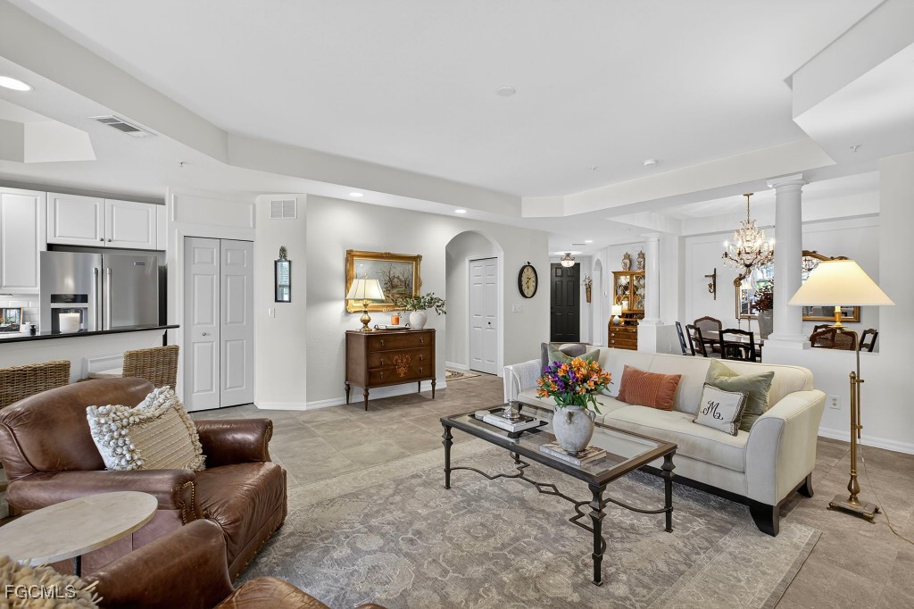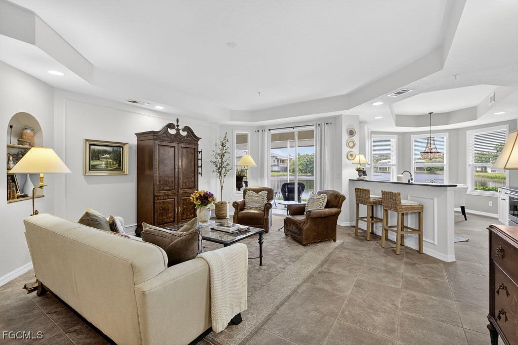 Location, Location! West of 41 with quick access to Coconut Point, Southwest International Airport, local beaches, unlimited shopping and dining. Don't miss this beautifully maintained 3 bedroom, 2 1/2 bath condo offering one of the best long range water views in The Meadows. Enjoy peaceful mornings, breathtaking sunsets as you watch wildlife walk by from your lanai overlooking the water. Inside you'll find spacious areas with elegant trim moldings, updated flooring, new fixtures and a neutral color palette that compliments any decor. Don't miss the chance to make it yours ~ schedule your private showing today.