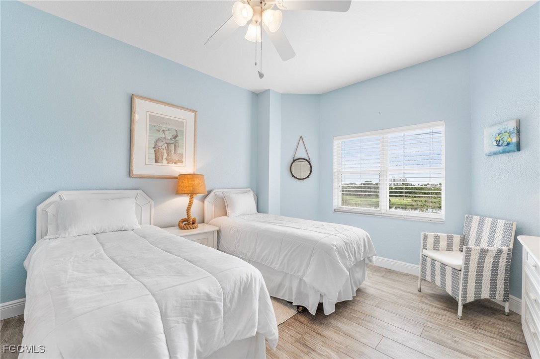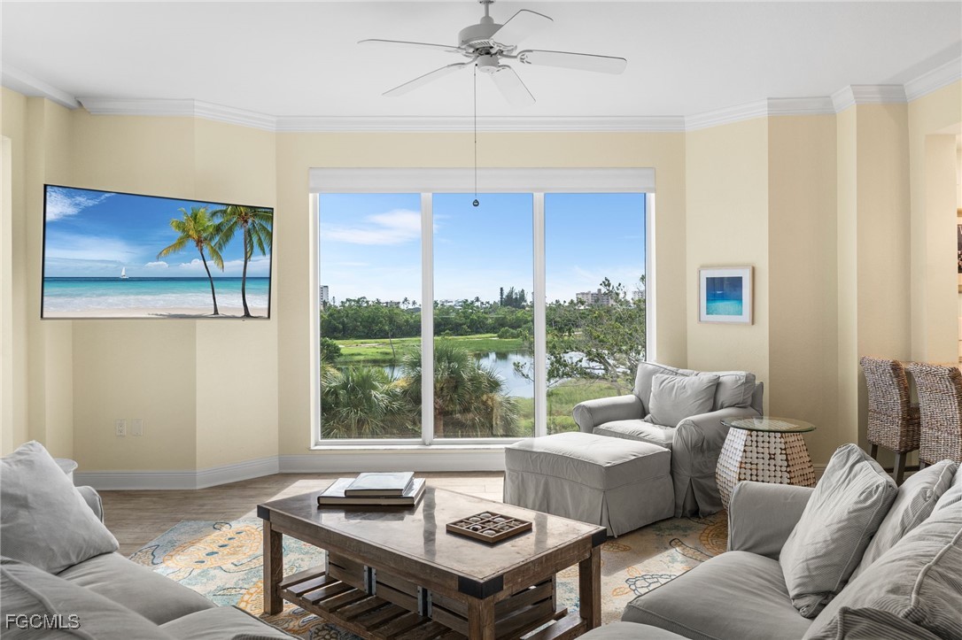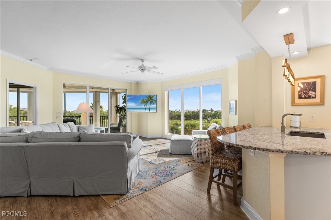 Beautiful Waterside 3 bed, 3 bath condominium that has a panoramic view of a large green nature preserve with lots of bird life and a skyline of beachfront condo on the Gulf of Mexico. You can enjoying sitting on the lanai watching the winter sunset skies and a bright natural ambience! This property is being offered turnkey furnished with tasteful modern furnishings! The kitchen has soft touch cabinetry and beautiful polished granite countertops. The large bay windows are tinted to keep the heat out and no need for curtains. The third bedroom has a queen size murphy bed and built in office space for two! It's the perfect office and spare bedroom. You have storage outside by the packing space and on the 2nd floor for easy convenience. You have one assigned covered parking space. Social room and exercise room are on the first floor. There are also guest suites on the first floor available to rent if the three bedrooms are not enough to handle guests or family. Waterside 1 is the first building as you go through the Guard Gate AC 2025 Electric panel 2024
