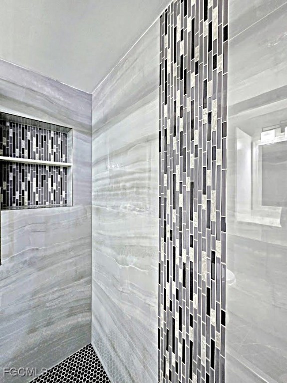 Step onto elegant large-format tile flooring that flows throughout the entire unit, complemented by soothing contemporary gray walls and abundant natural light.
