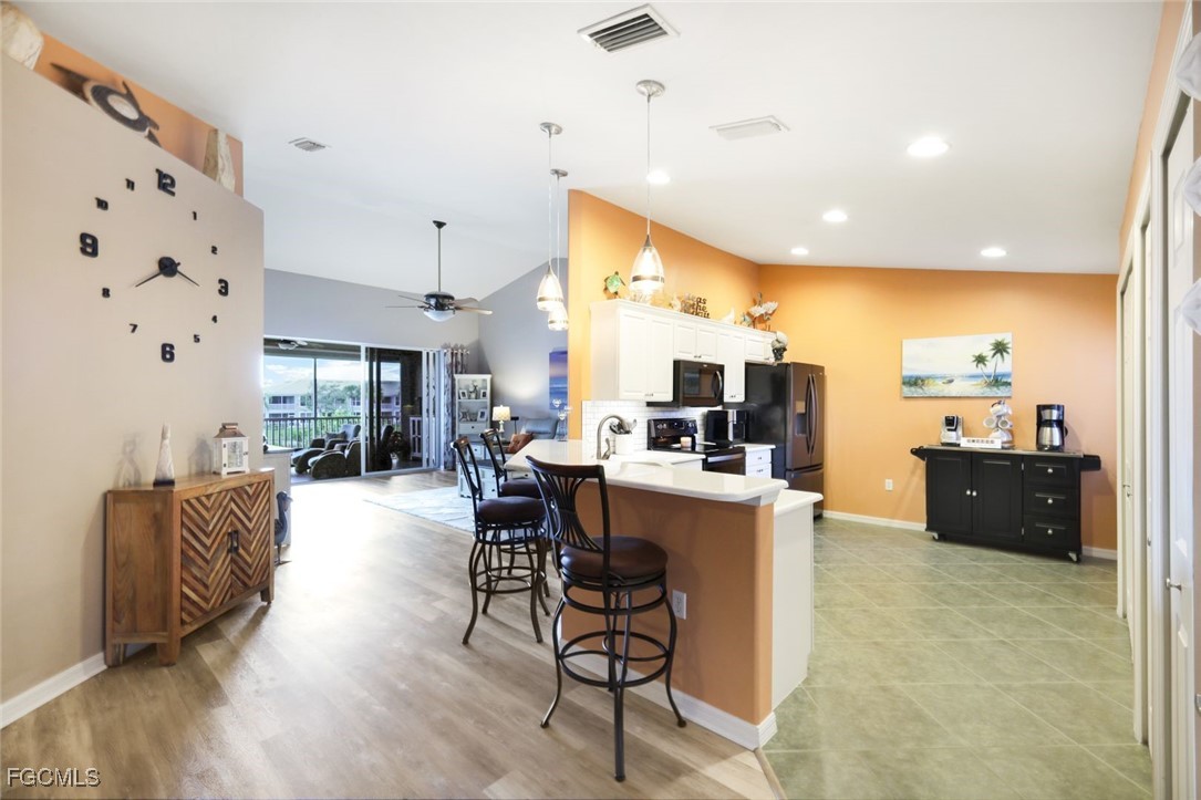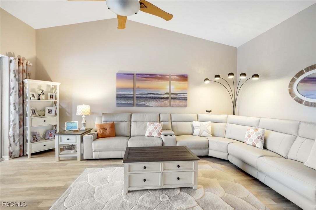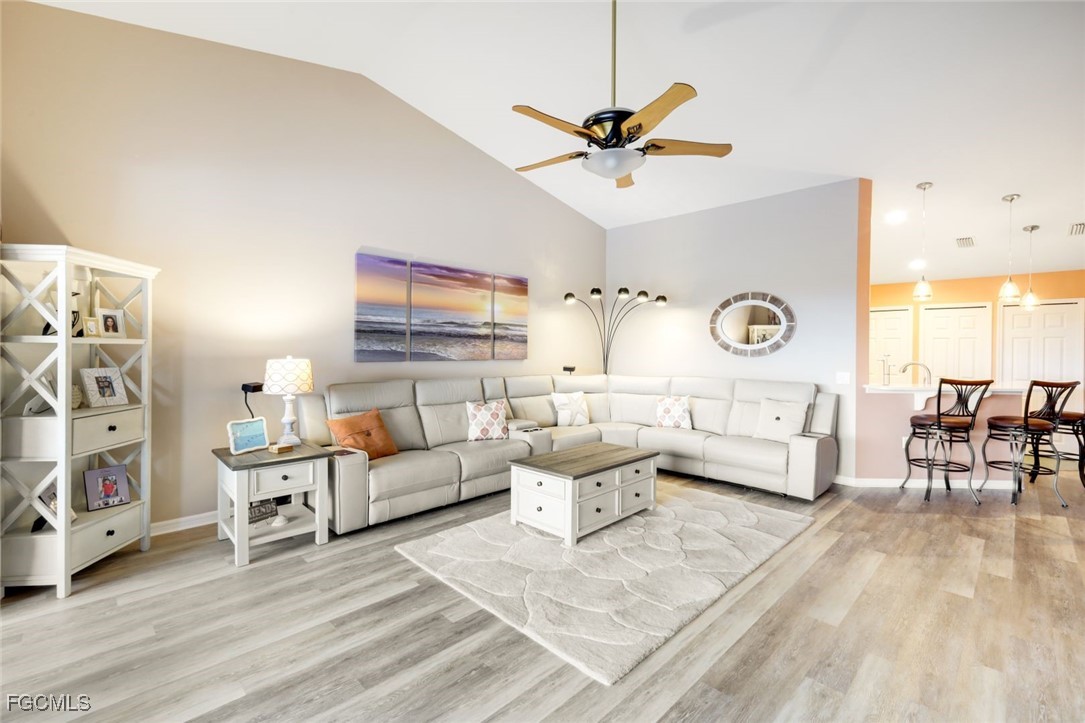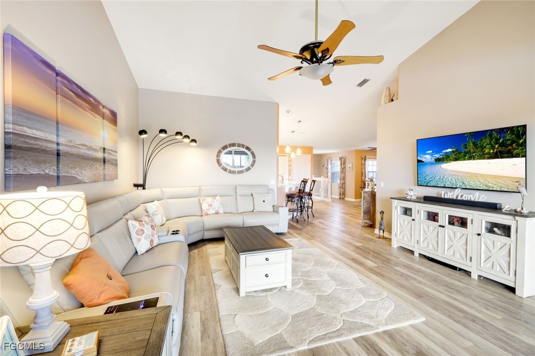 Step inside this bright and airy 3-bedroom, 2-bath residence and take in the stunning water views from your oversized lanai, living room, and private primary suite. Vaulted ceilings add to the sense of space, while luxury vinyl plank flooring in a soft coastal tone provides warmth and style.