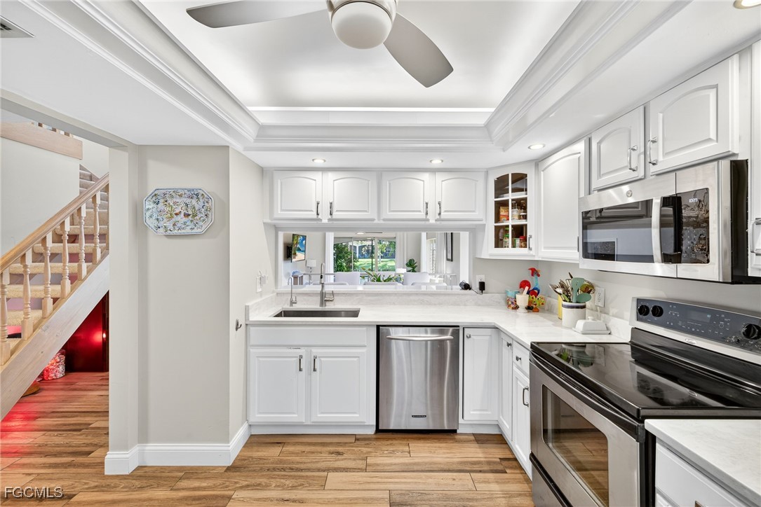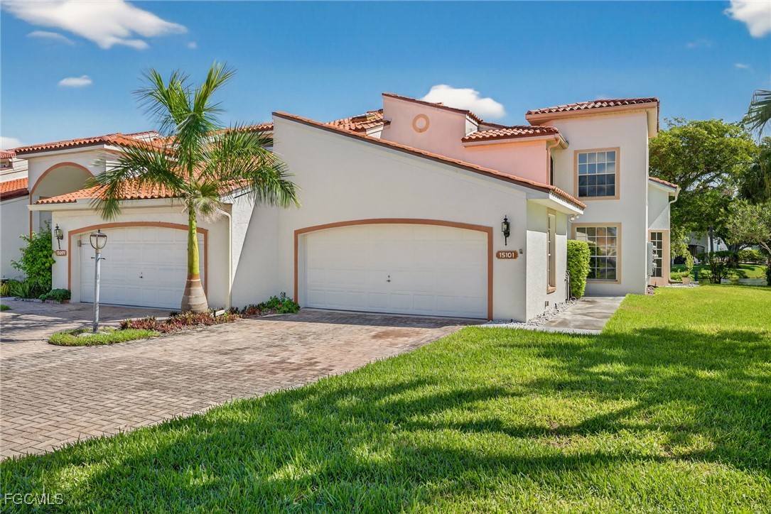 This END UNIT townhome features a spacious garage, recently updated kitchen and guest bath, crown molding, soaring ceilings, and an abundance of natural light. Enjoy private water views from the screened lanai, surrounded by lush and mature landscaping.